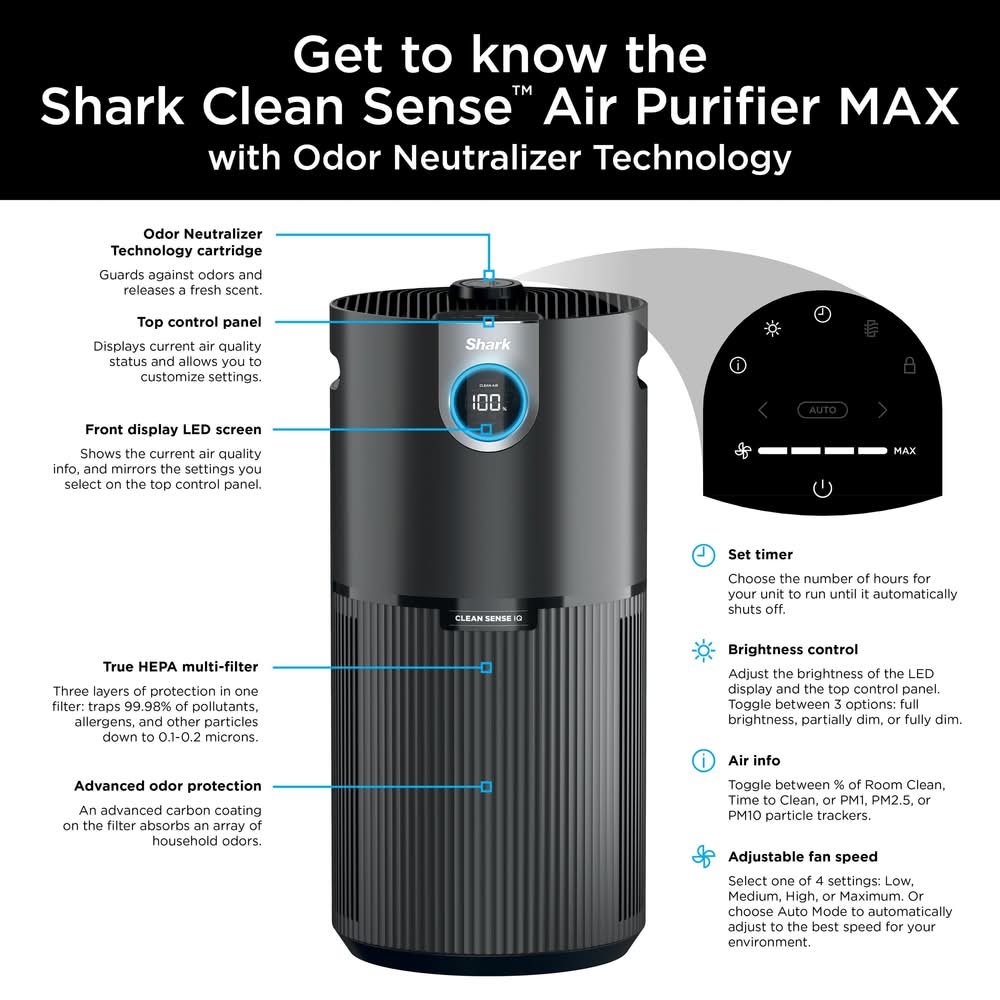 Shark Clean Sense Air Purifier Max With Odor Neutralizer Technology, Black