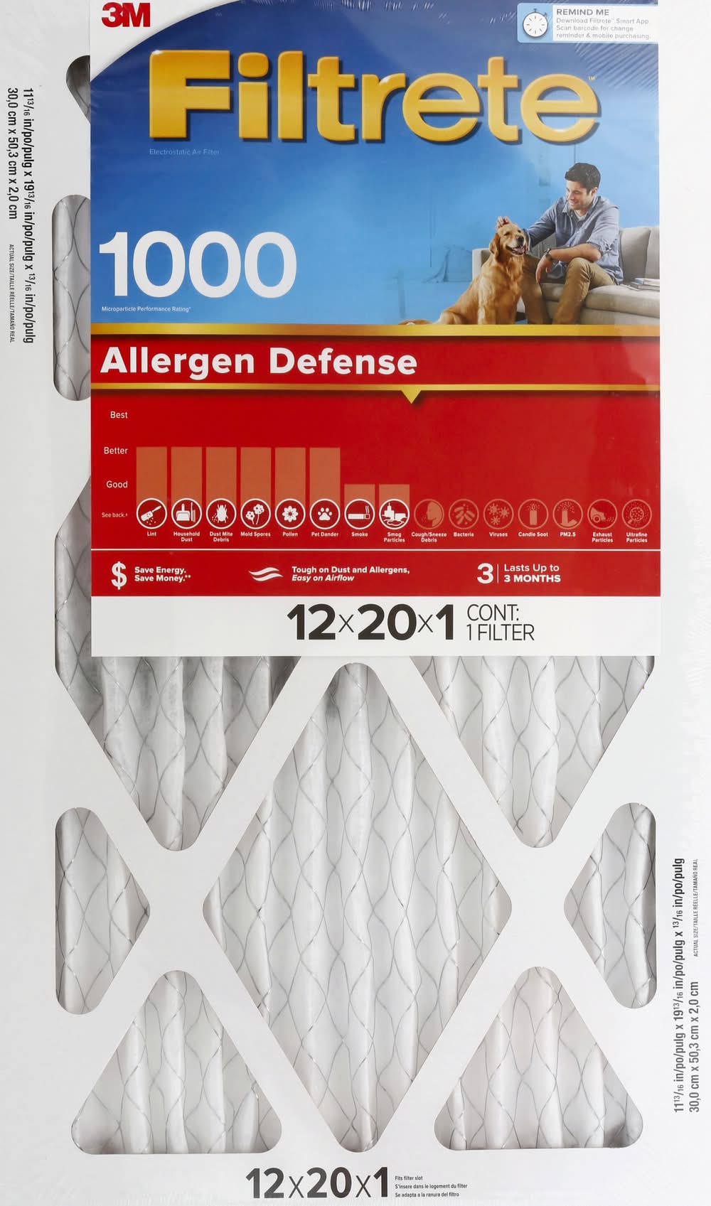 Filtrete Allergen Defense Air Filter 1000 Mpr, 12x20x1 in