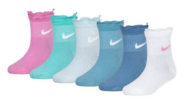 Nike Big Girls Ruffled Ankle Length Socks, Women, Youth S, Assorted (6 ct)