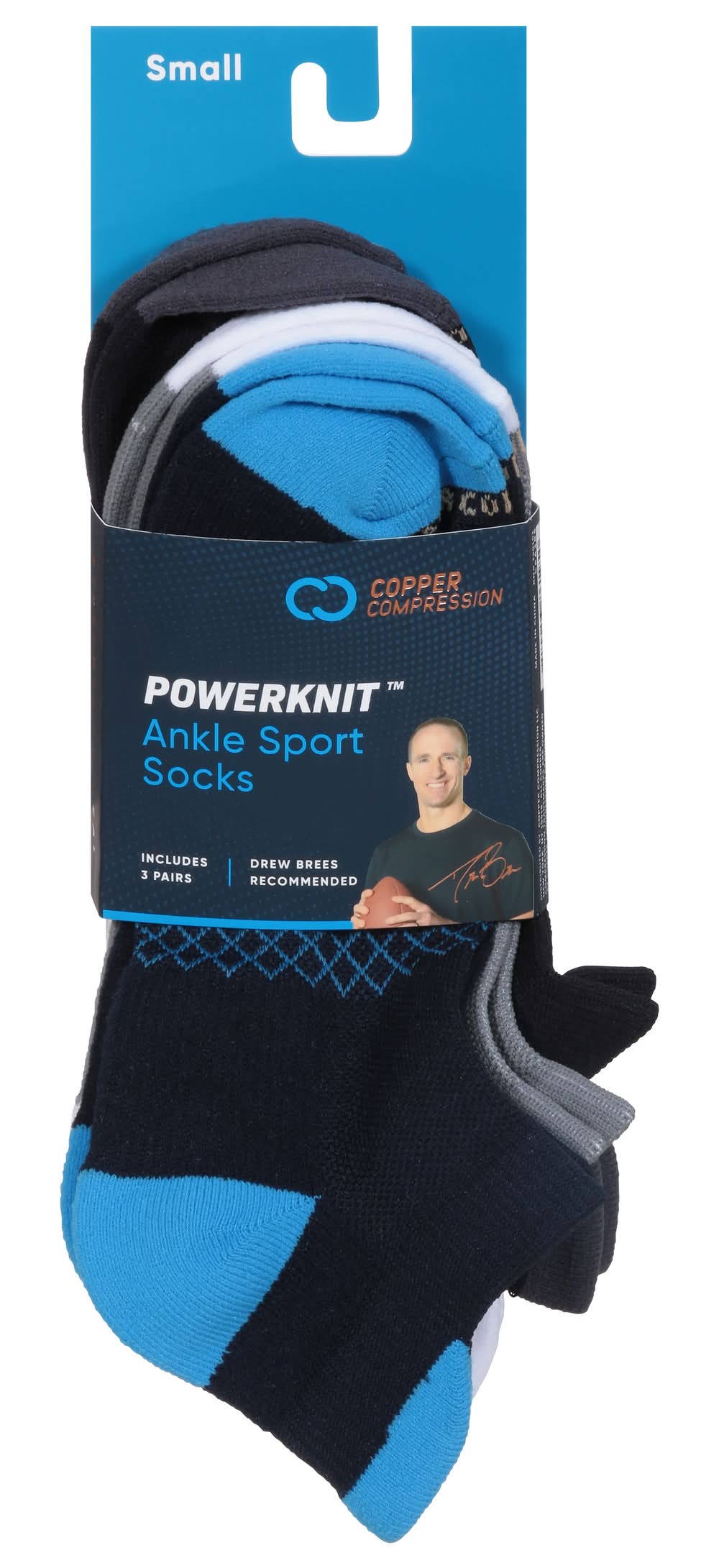 Copper Compression Powerknit Ankle Support Socks, Small, Black