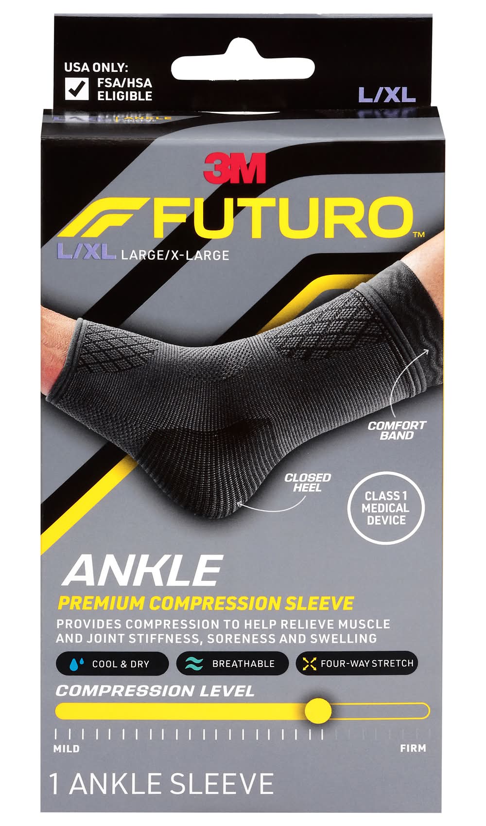 Futuro Premium Compression Ankle Sleeve, L/XL, Dark Gray
