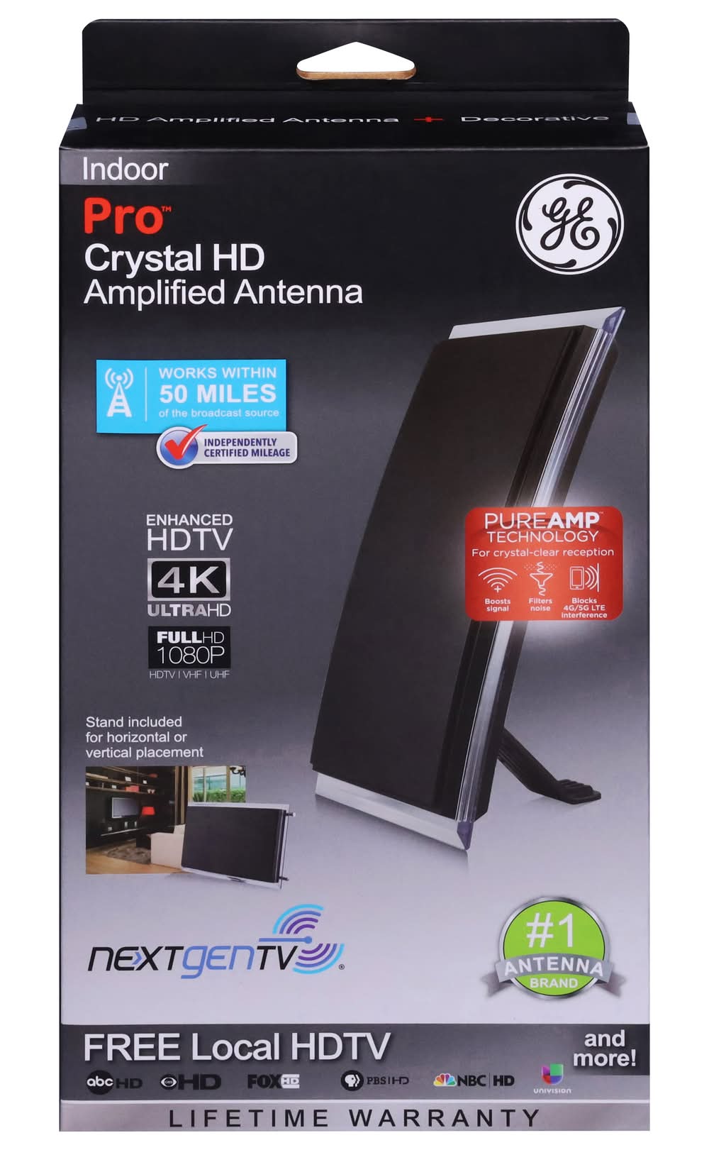 General Electric Pro Amplified Crystal Hd Indoor Antenna, Black