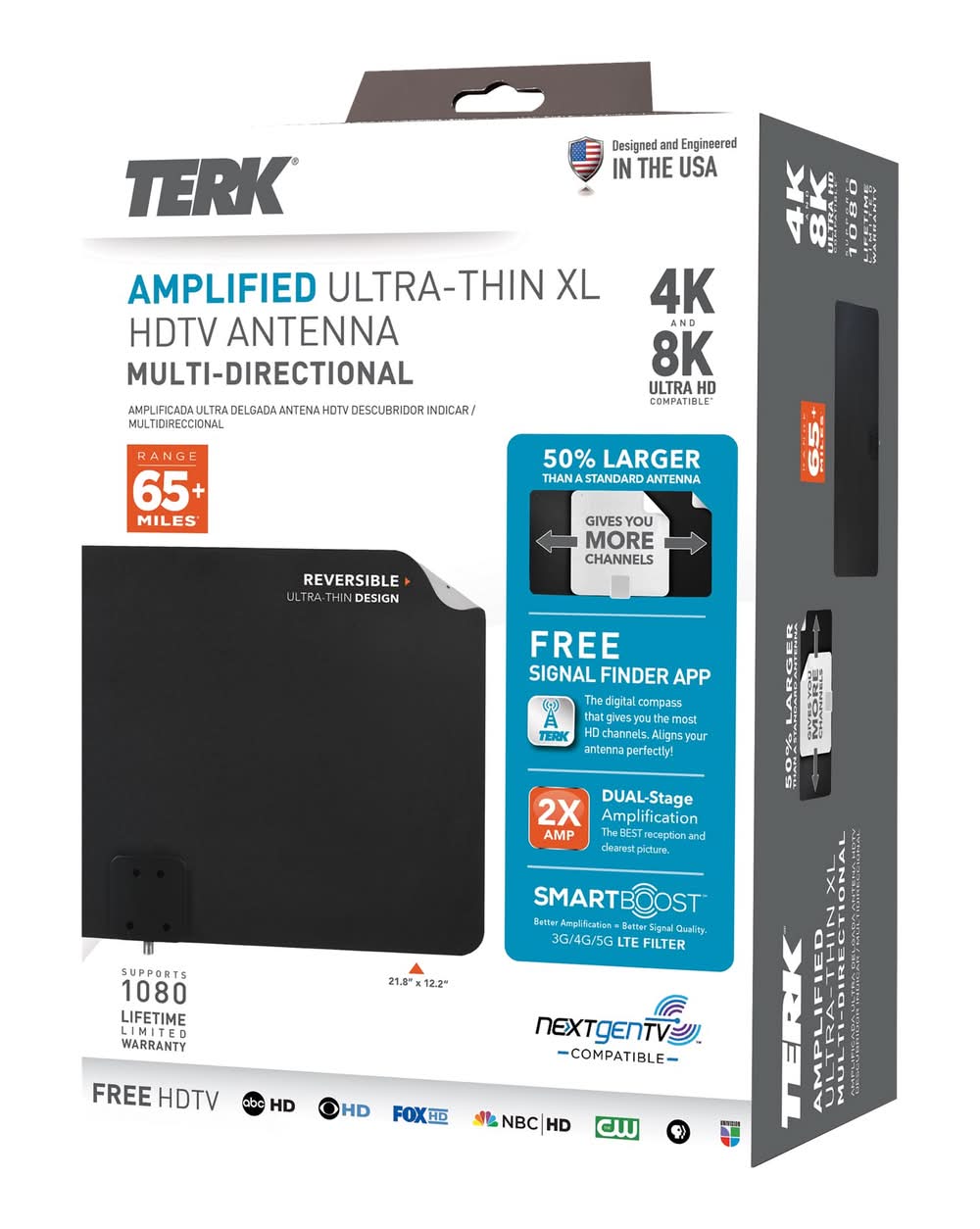 TERK Amplified Multi-Directional Ultra-Thin Xl Hdtv Antenna, Black/White