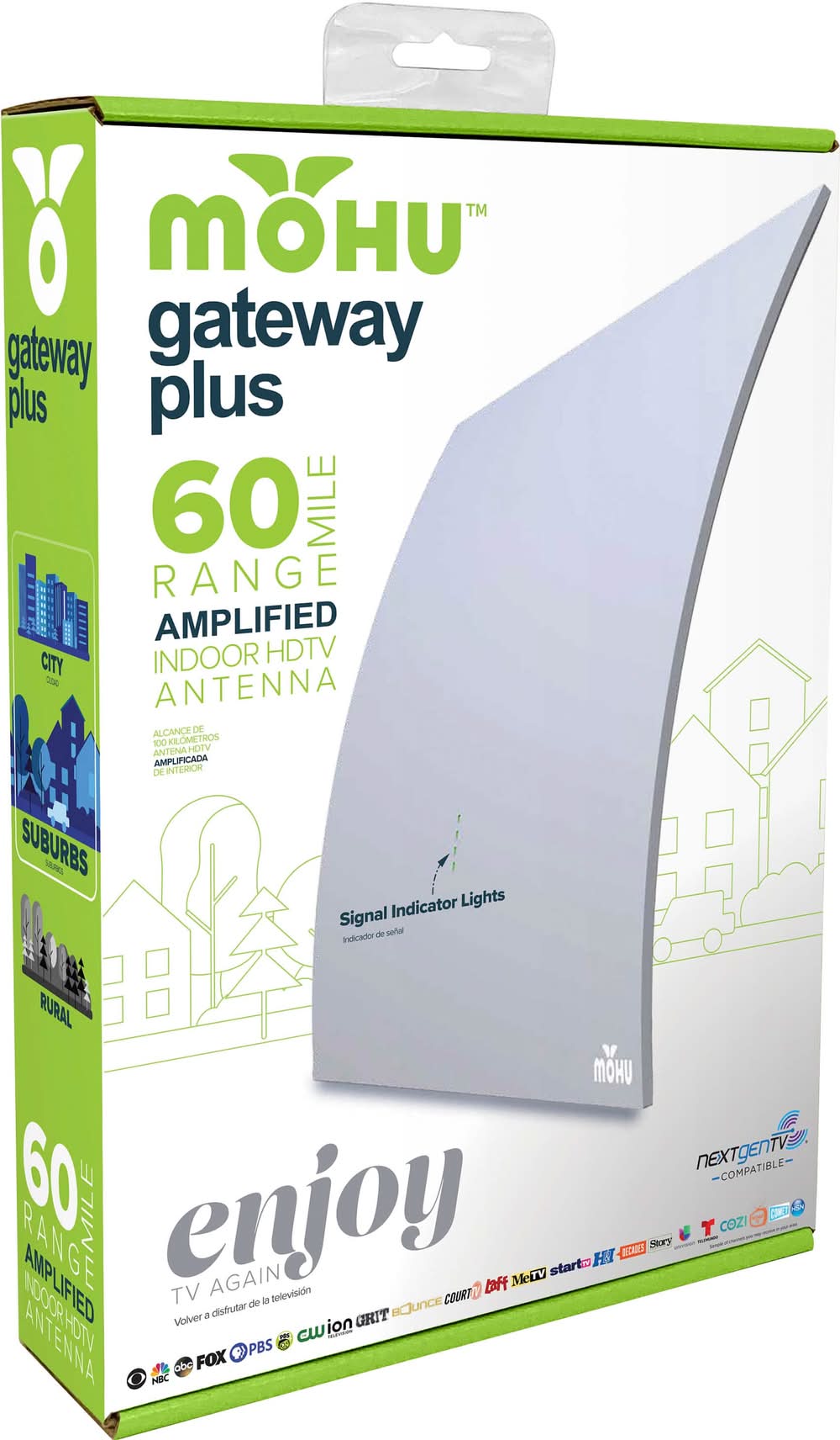 Mohu Gateway Plus Amplified Indoor Hdtv 60 Mile Range Antenna, Gray