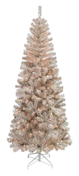 At Home Pre-Lit Led Champagne Tinsel Artificial Christmas Tree, 7 ft