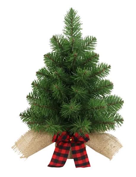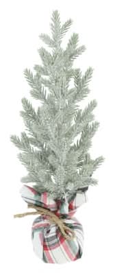 Ashland Snowy Green Pine Accent Tree in Plaid Fabric Base, 12 in