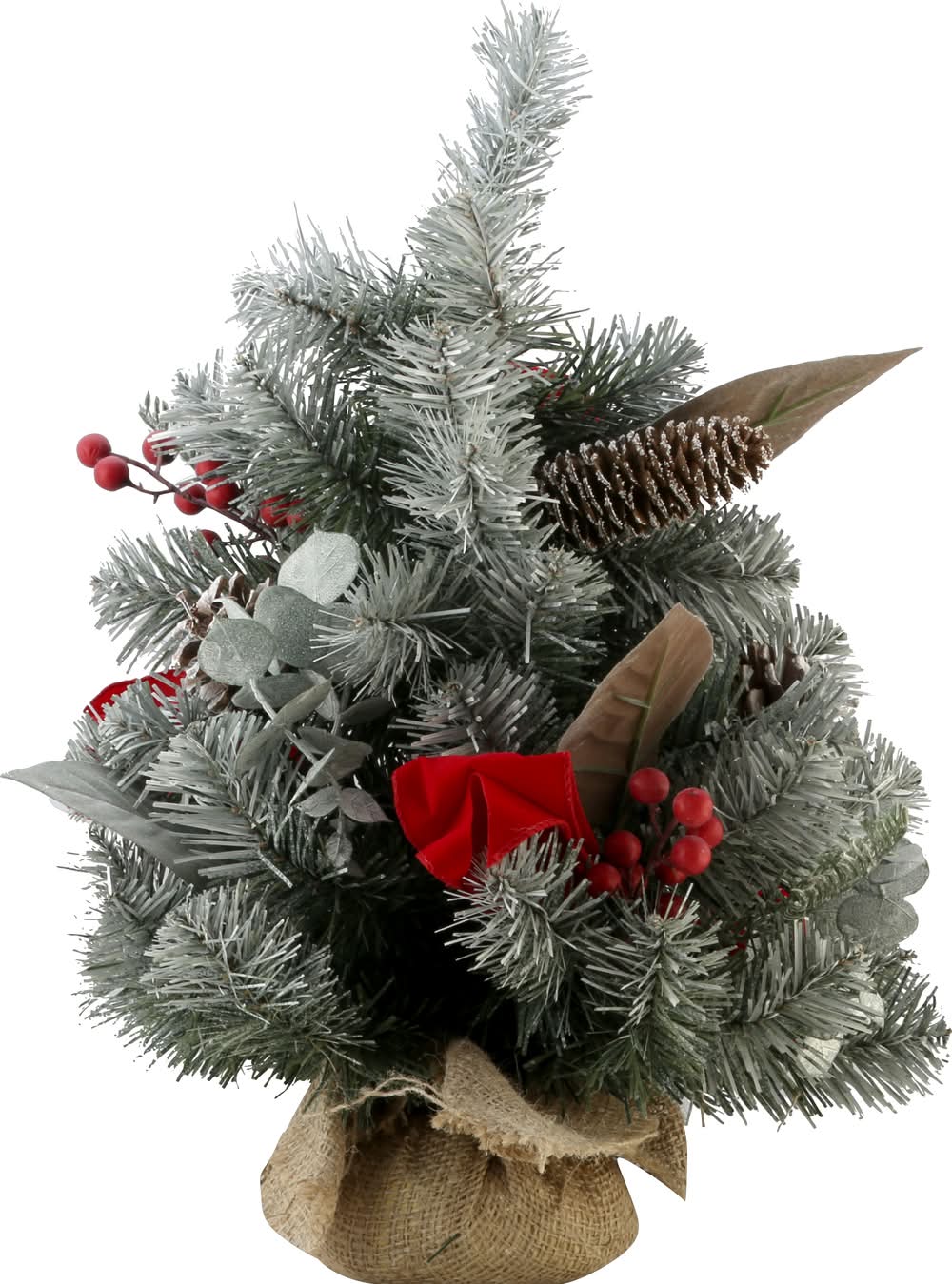 Ashland Green Pine Accent Tree With Glitter Berries in Red Velvet Base, 12 in