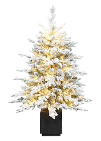 At Home Pre-Lit Flocked Bradley Spruce Porch Christmas Tree, 4 ft