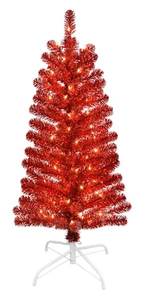 At Home Pre-Lit Tinsel Christmas Tree, 4 ft, Red
