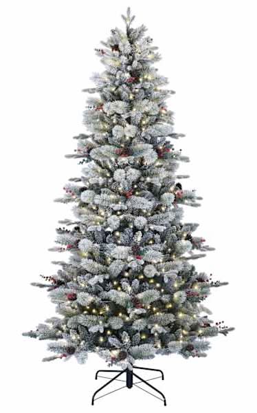 Holiday Living Flocked Frost Berry Mixed Needle Pre-Lit Led Artificial Christmas Tree, 4.5-ft