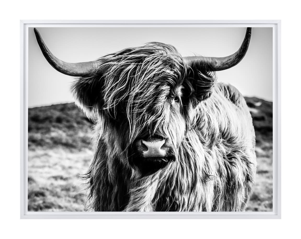 Stratton Home Decor Highland Cow Framed Canvas Wall Art, 18 in. x 12 in., Black-White