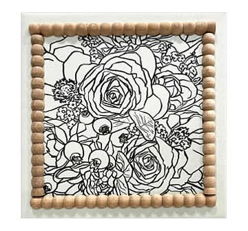 Floral Canvas Art With Beaded Border, Dark Teal-White