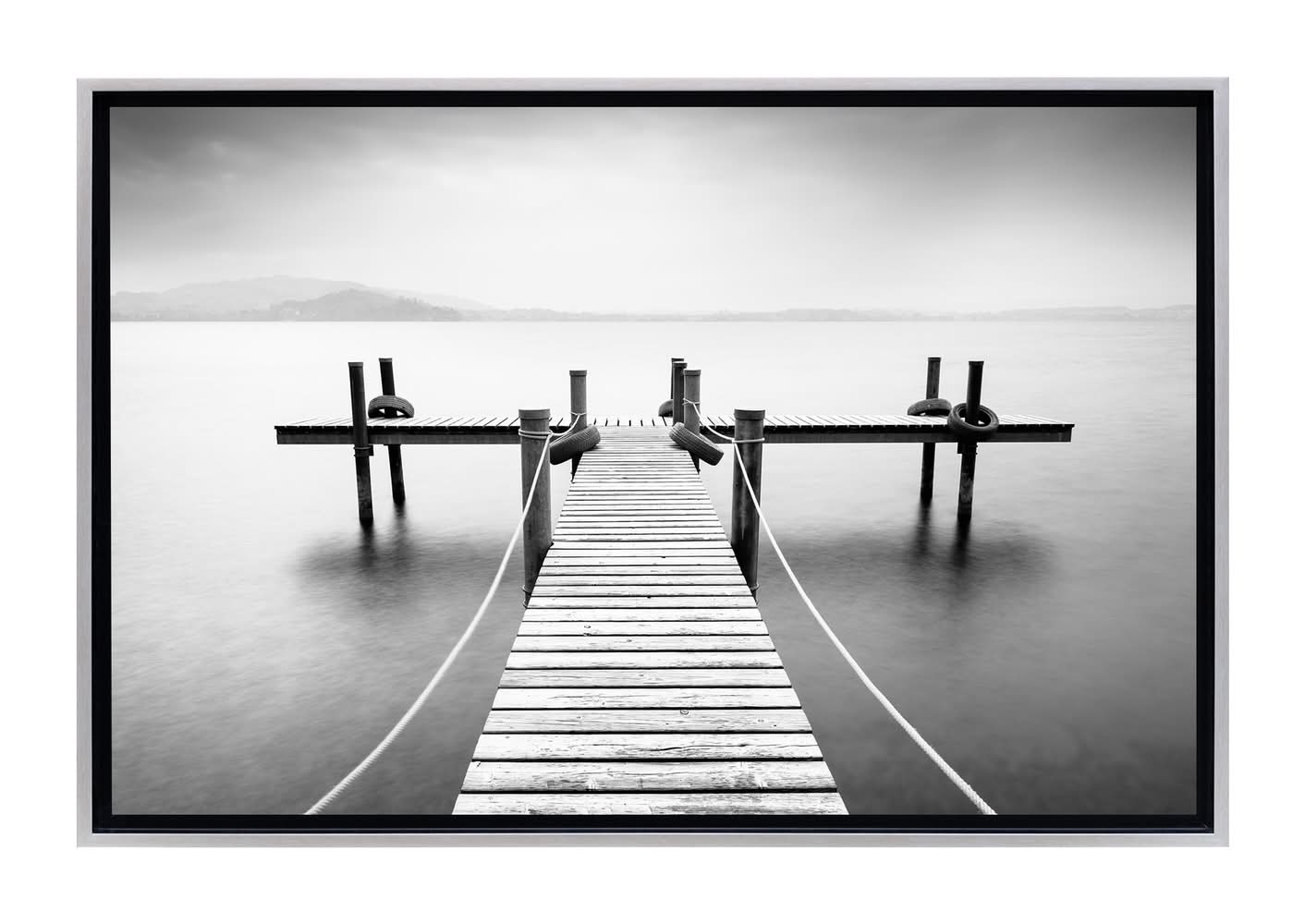 Mrs. Stratton's Lake Pier Framed Canvas Wall Art