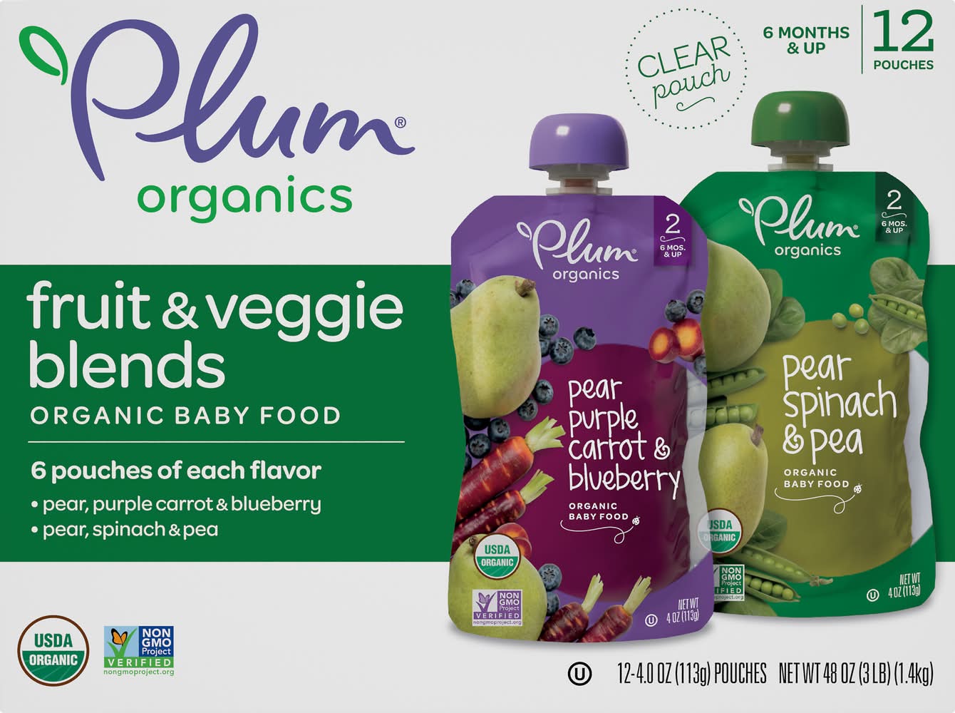 Plum Organics Fruit & Veggie Blends Baby Food 6 M+ (3 lbs)
