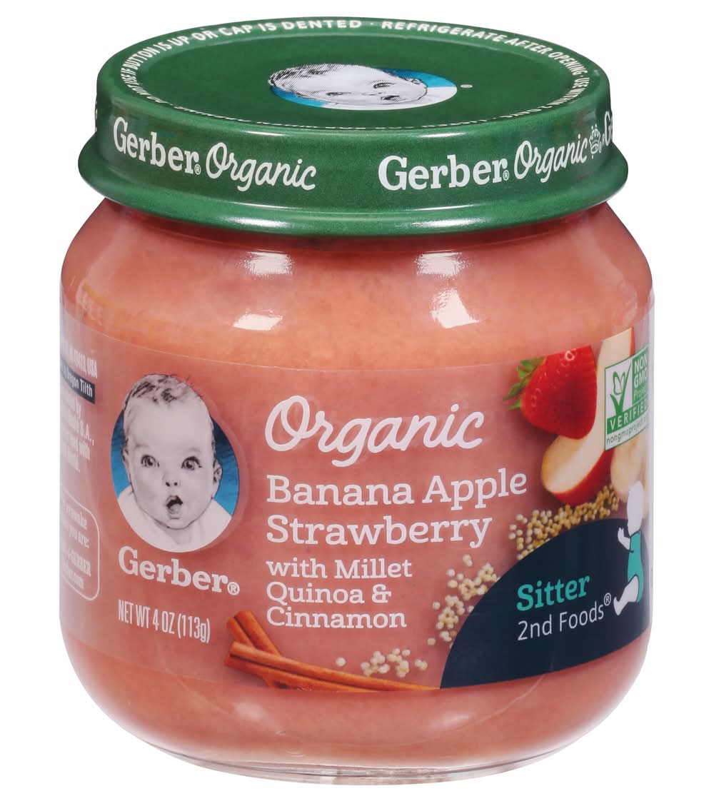 Gerber Grain & Grow Organic Banana Apple Strawberry Puree Sitters 2nd Foods (4 oz)