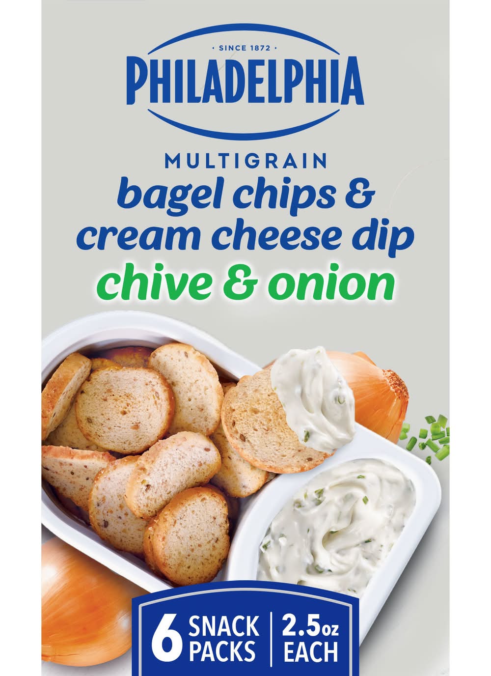 Philadelphia Multigrain Bagel Chips & Cream Cheese Dip, Chive & Onion (6 x 2.5 oz)