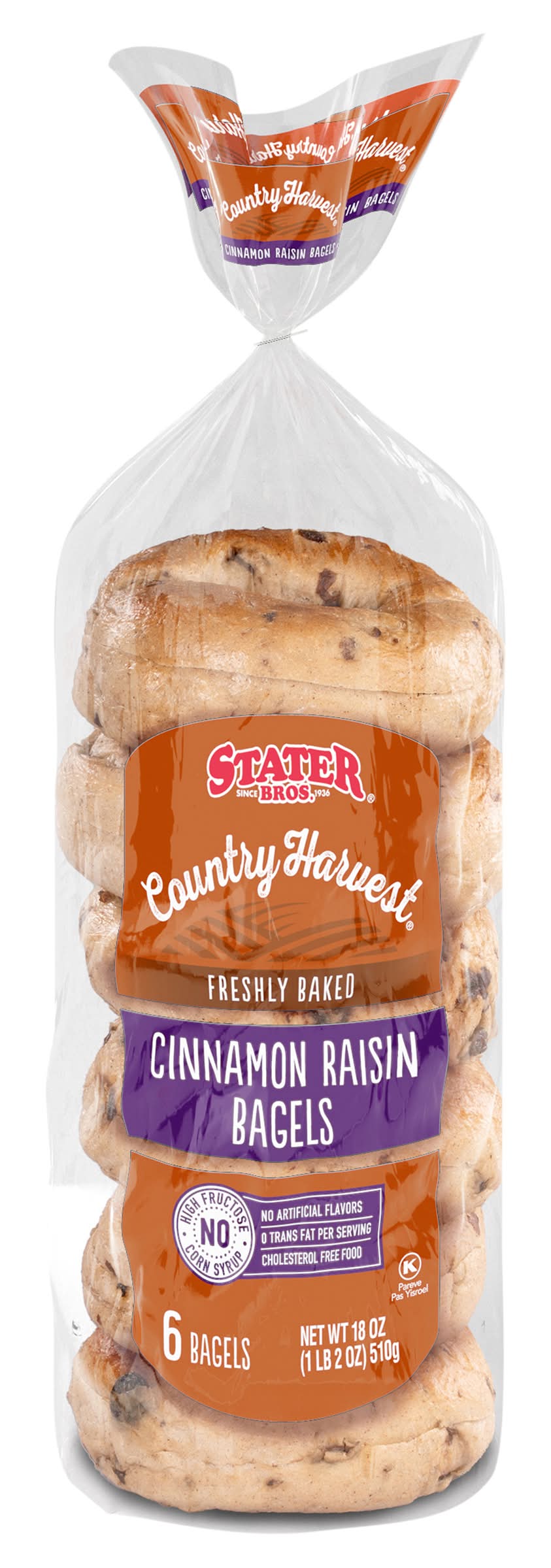 Stater Bros. Country Harvest Freshly Baked Bagels, Cinnamon Raisin (18 oz, 6 ct)