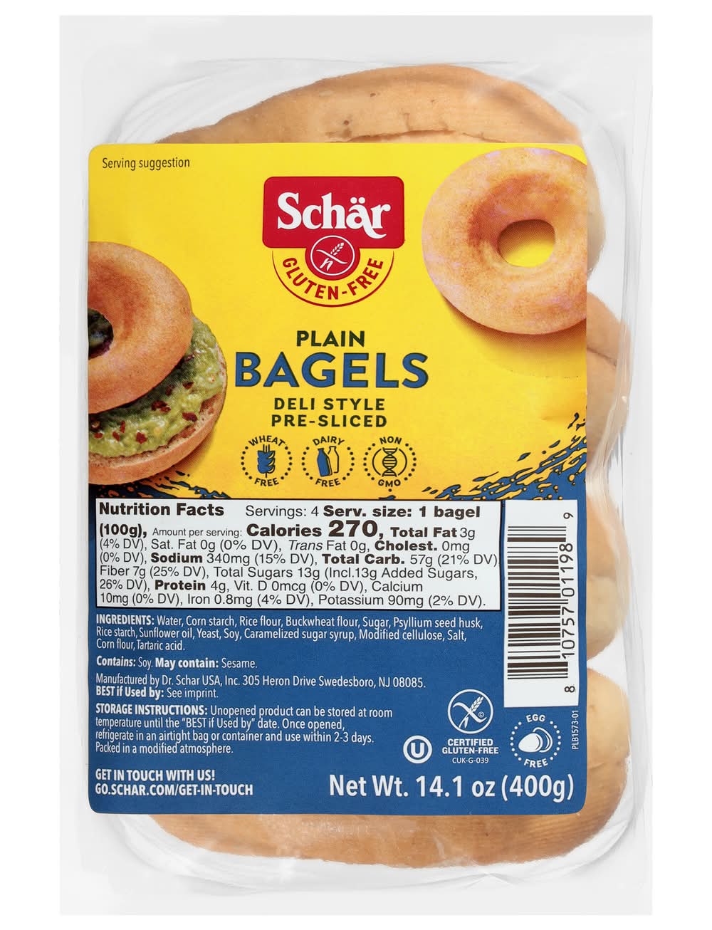 Schär Gluten Free Pre-Sliced New York Style Plain Bagels (14.1 oz)