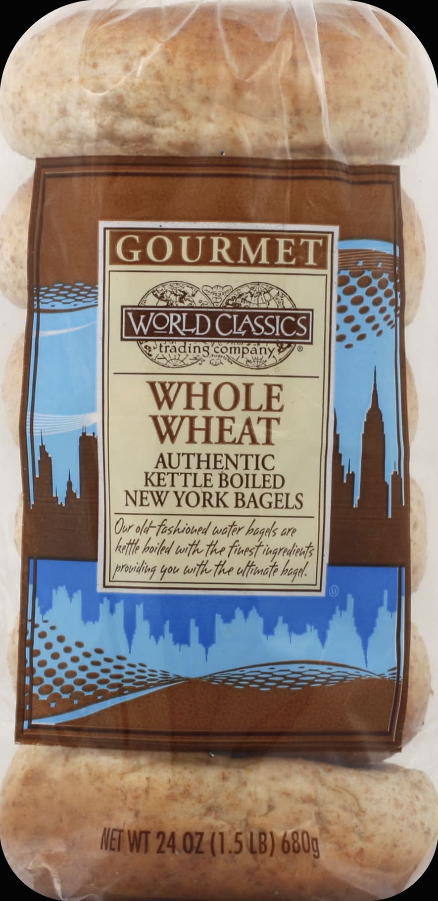 World Classics Authentic Kettle Boiled New York Bagels, Whole Wheat (24 oz)