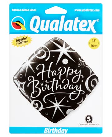 Qualatex Suprafoil Diamond Swirls Birthday Balloon, 18", Black-Silver