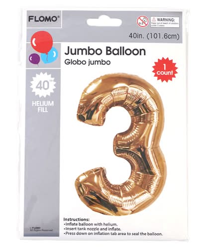 Meijer Foil Balloon Number 3, 36 in, Gold