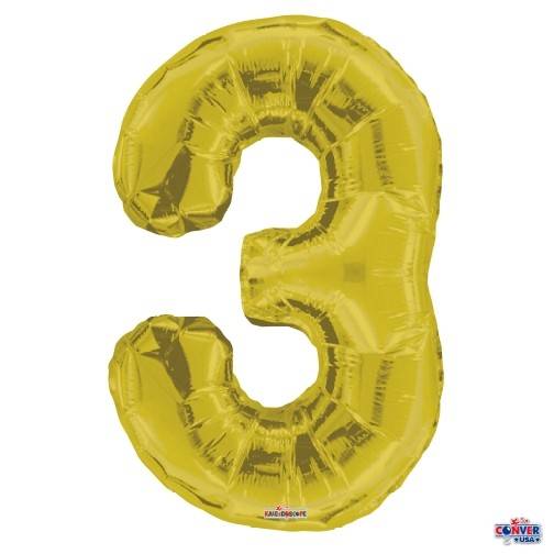 Flomo Numerical 3 Metallic Balloon, Gold