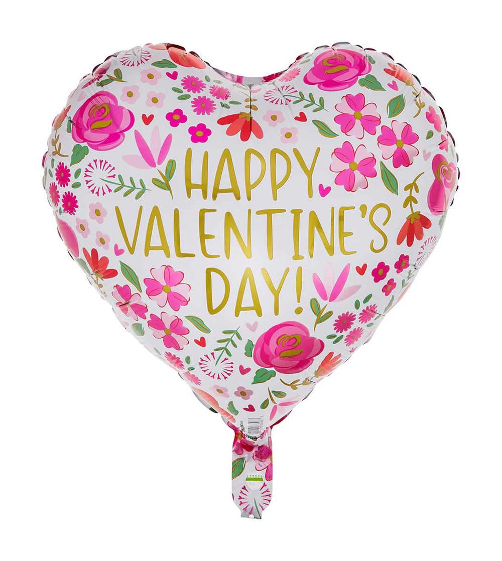 Foil Happy Valentine's Day Heart Shaped Balloon With Curling Ribbon, 17 in