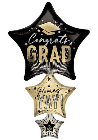 Progressive Balloons Stripes on Stripes Grad Stars Foil Balloon, XL
