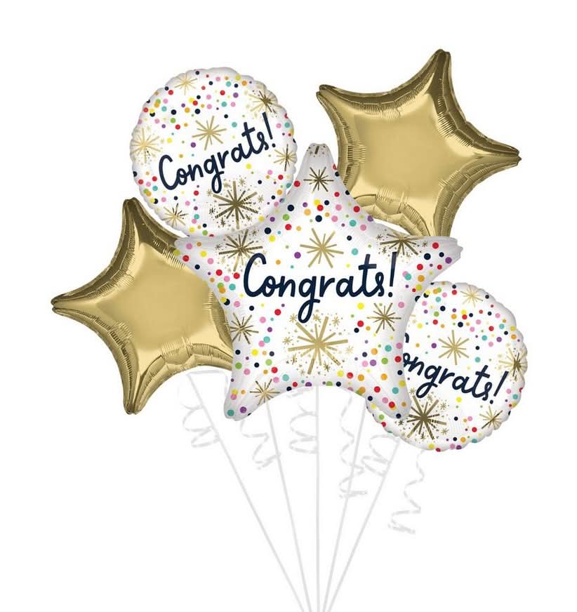 Confetti Sprinkle Congrats Foil Balloon Bouquet (19.04 oz, 5 ct)