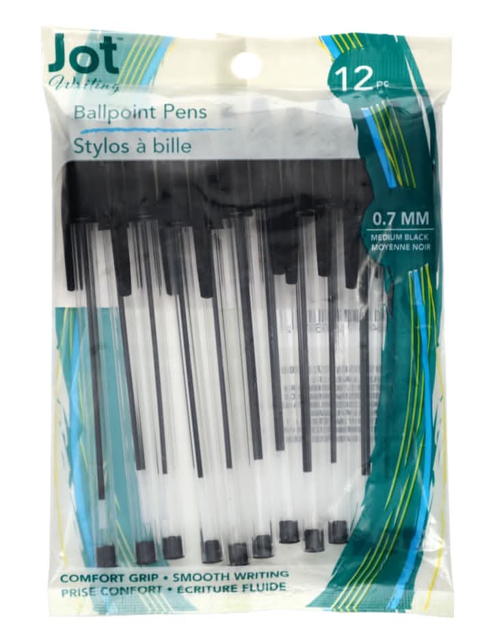 Jot Writing Ballpoint Pens, Black (12 ct)