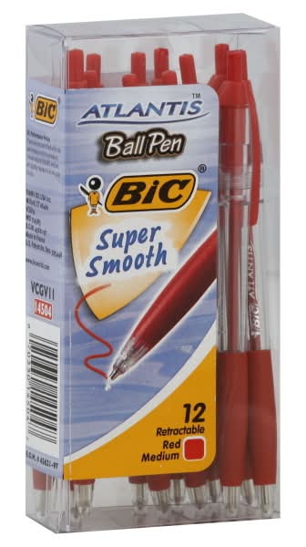 BiC Atlantis Super Smooth Retractable Medium Ball Pens, Red