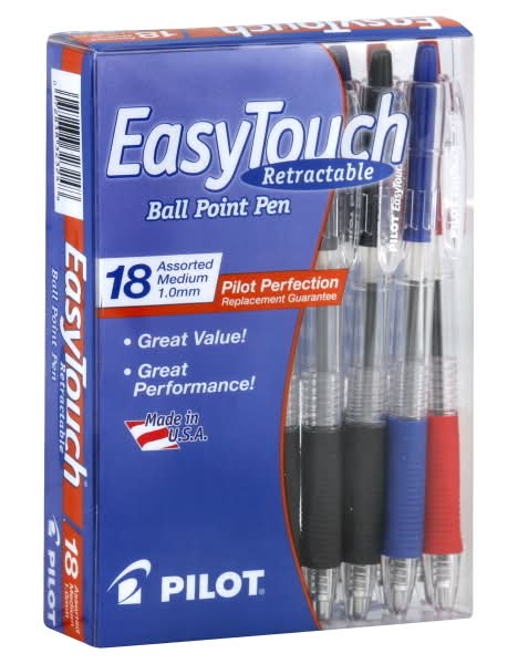 Pilot Easytouch Ball Point Medium 1.0mm Pens, Blue-Black-Red (18 ct)