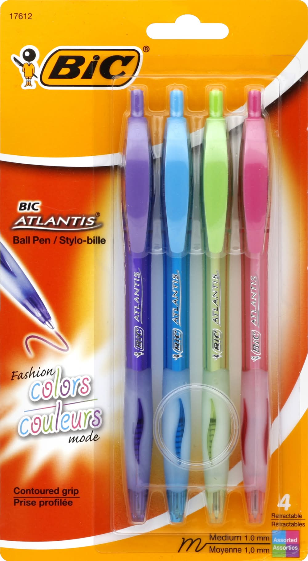 BiC Glide Retractable Ballpoint Pens Assorted Barrels Fashion Ink Colors (4 pack)