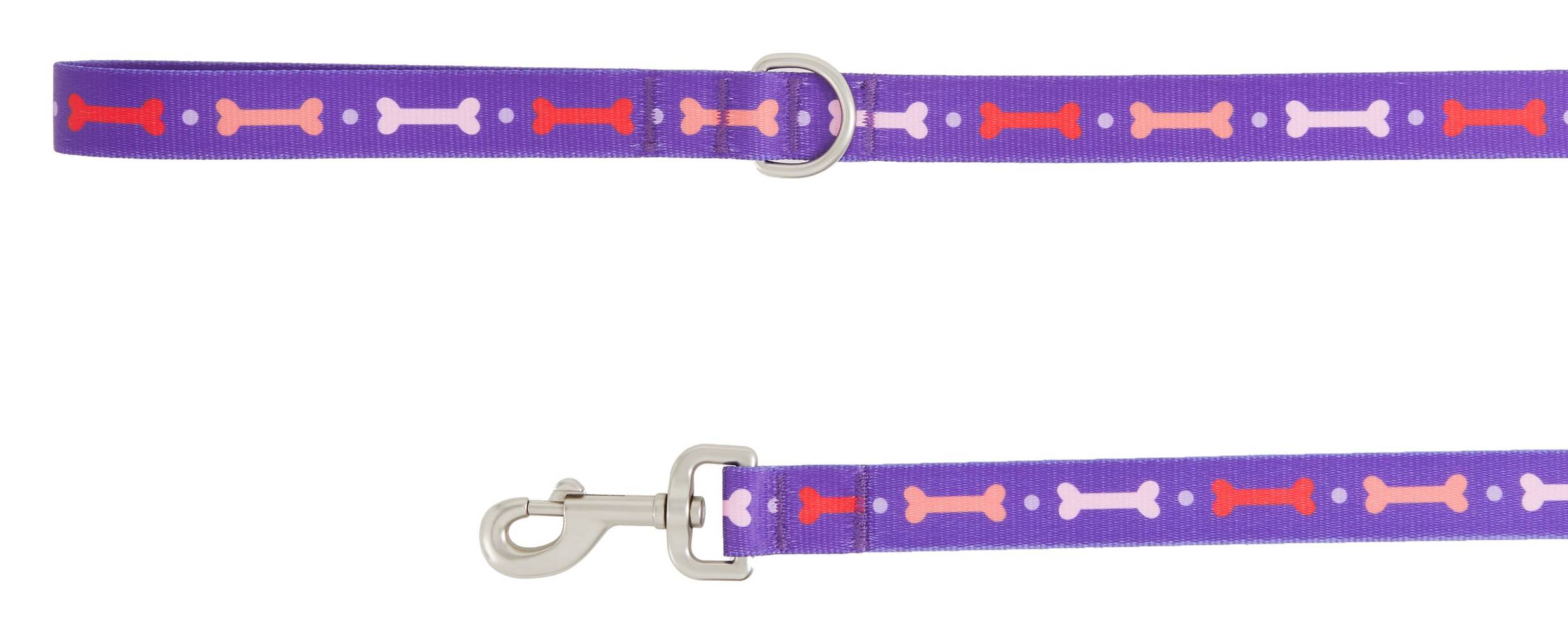 Top Paw Bones Dog Leash, 4 Ft, Purple