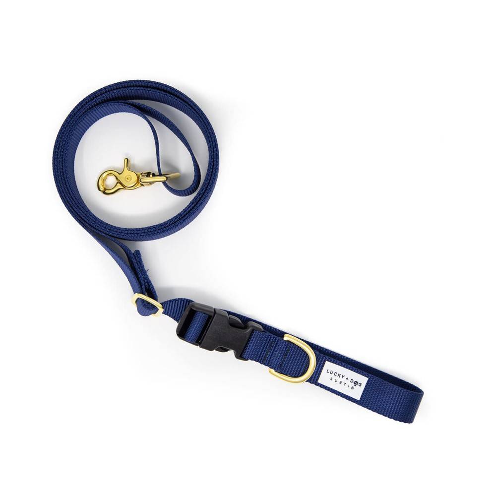 Coastal Ribbon Dog Leash, Navy Blue Plaid, Small/Medium - 5/8" X 4', Blue