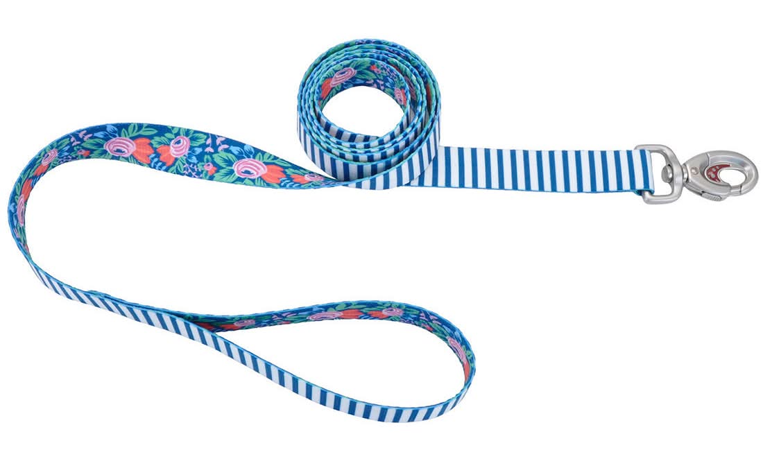 Coastal Sublime Dog Leash, 1" X 6', Teal Stripes With Flowers