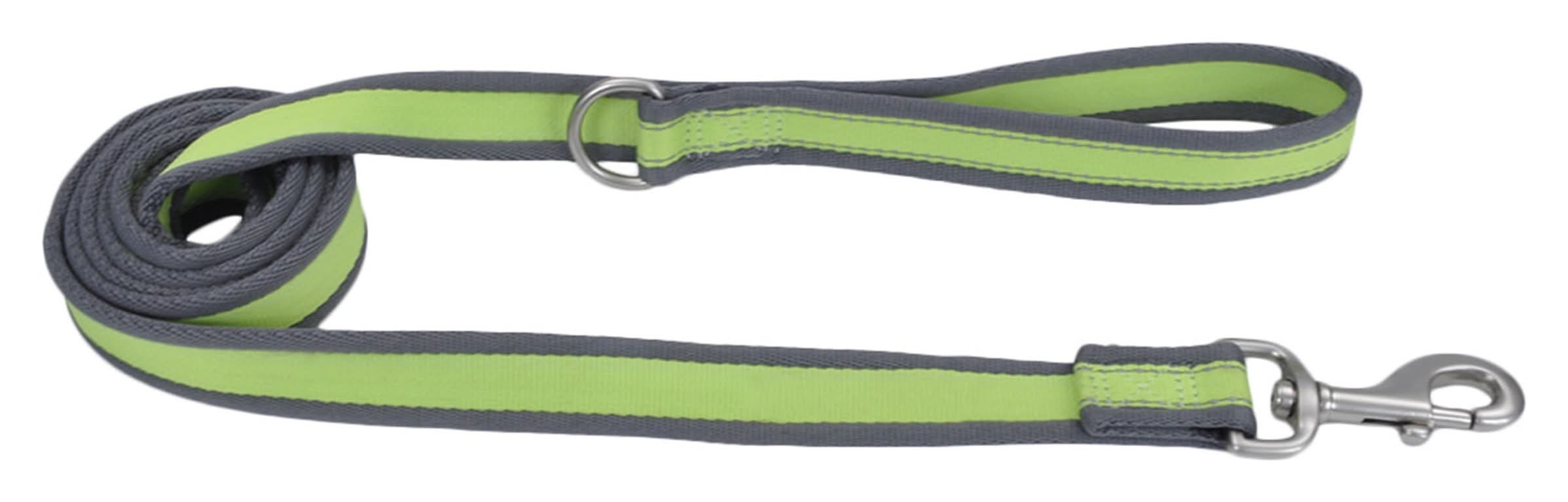 Coastal Reflective Dog Leash, Medium/Large - 1" X 6', Bright Green With Grey
