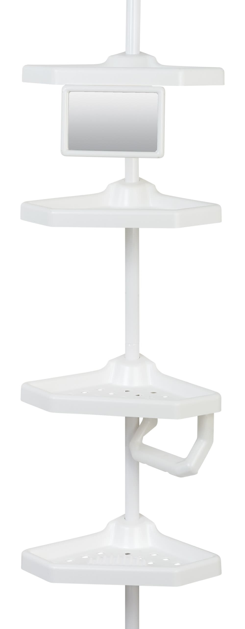 Style Selections Steel 4 -Shelf Tension Pole Freestanding Shower Caddy, 13.4x9.4x97 in, White