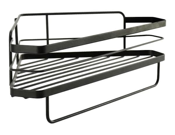 At Home Keller Corner Shower Shelf With Adhesive Sticker Hooks, Black