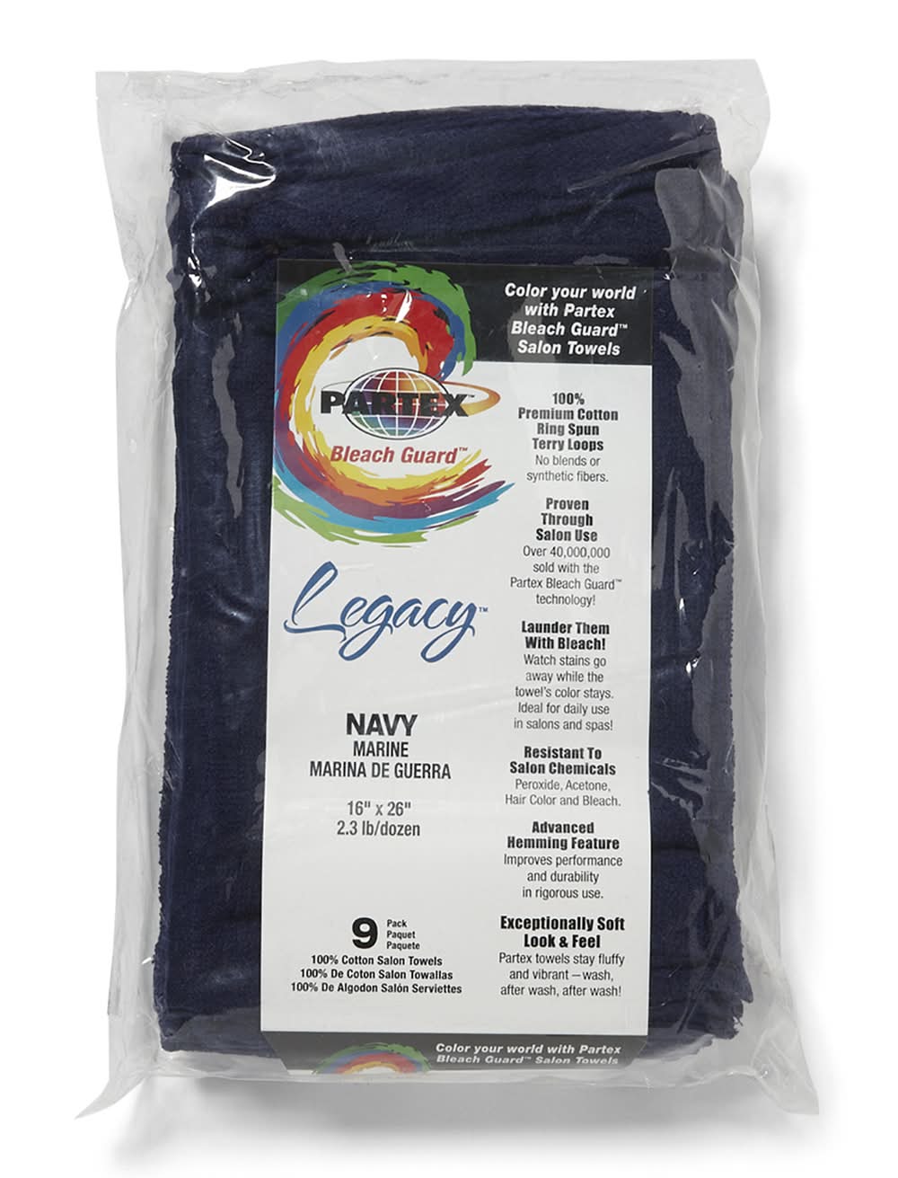 Protex Bleach Guard Legacy Cotton Towels, 16x26 in, Marine Navy (9 ct)