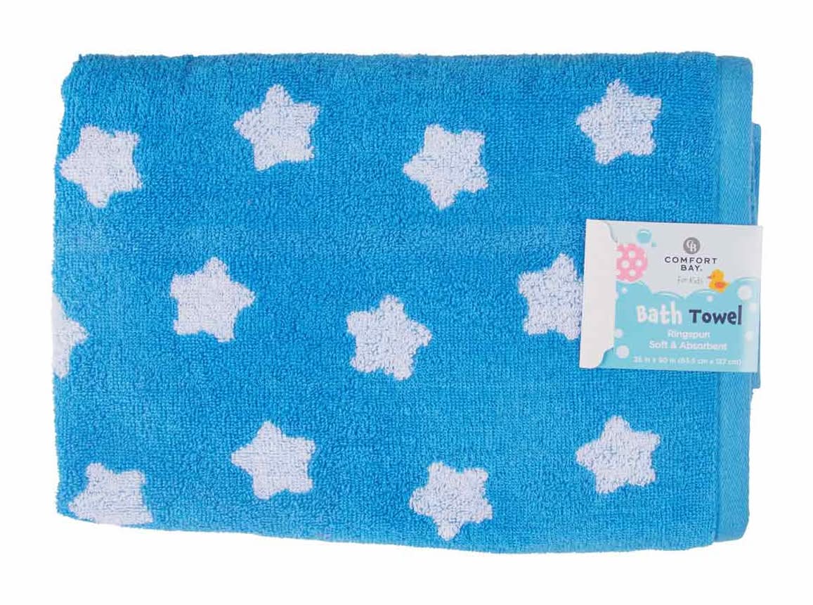 Comfort Bay Kids Bath Towel, 25x50 in, Blue-White
