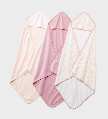 Cloud Island Baby Hooded Towel, 30x30 in, Pink (3 pack)