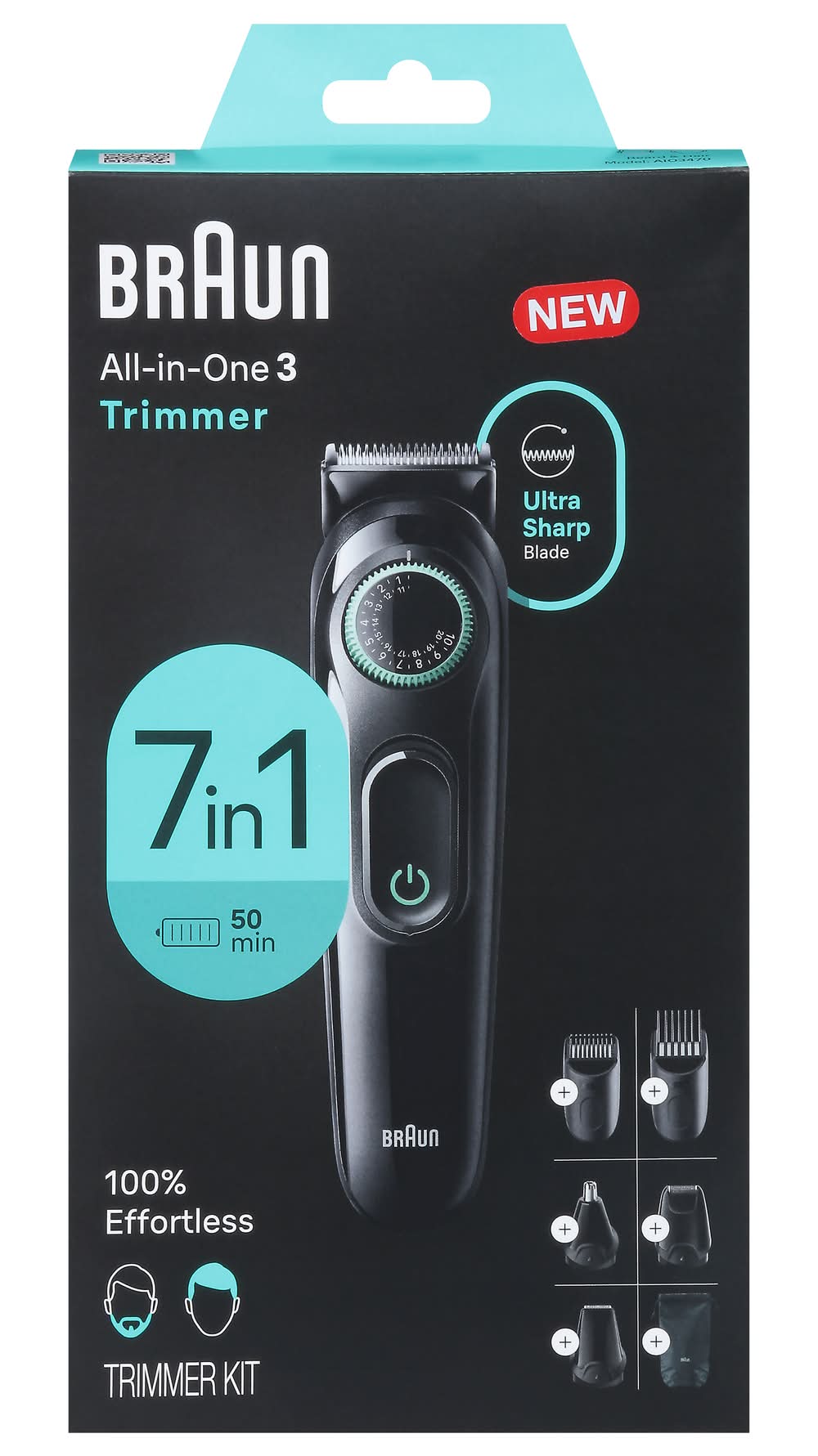Braun Series 3 3470 7 in 1 Men's Ultra Sharp Blade Trimmer With Clippers, Black