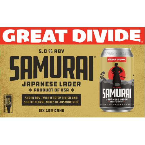 Great Divide Samurai Japanese Lager Beer (6 x 12 oz)