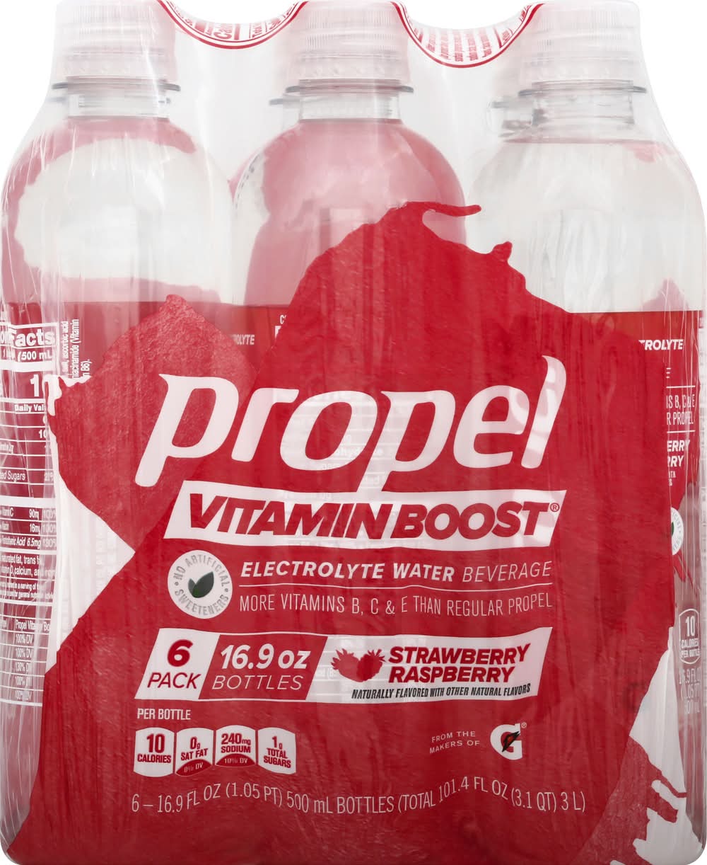 Propel Vitamin Boost Electrolyte Water, Strawberry, Raspberry (6 x 16.9 fl oz)
