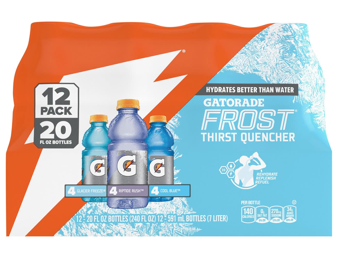 Gatorade Frost Thirst Quencher Sports Drinks, Glacier Freeze-Riptide Rush-Cool Blue (12 x 20 fl oz)
