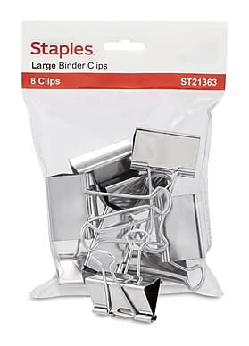 Staples Binder Clips, L, Silver (8 ct)
