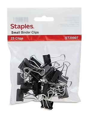 Staples Small Binder Clips St20907, 19 mm, Black (25 ct)