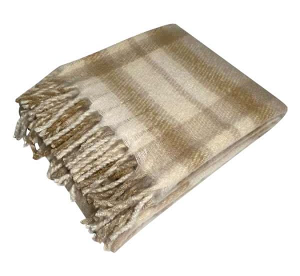Honeybloom Plaid Mohair Throw Blanket, 50x60 in, Brown