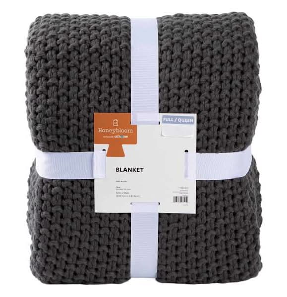 Honeybloom Sweater Knit Bed Blanket, Full/Queen, Dark Grey